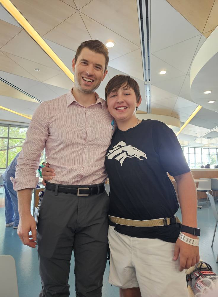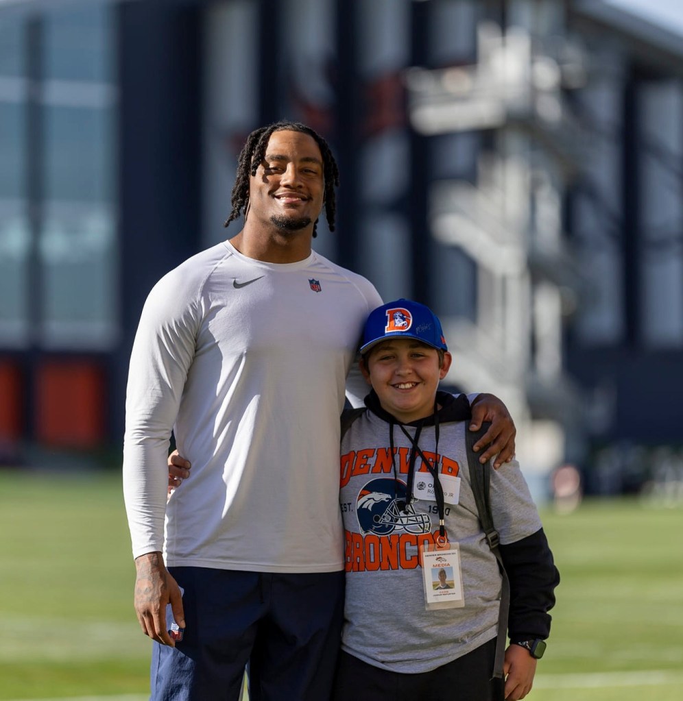 Jr. Reporter Ozzie interviews Nik Bonitto after practice on Thursday, October 24, 2024 at Broncos Park Powered by CommonSpirit in Englewood, Colorado. Photo by Gabriel Christus / Denver Broncos